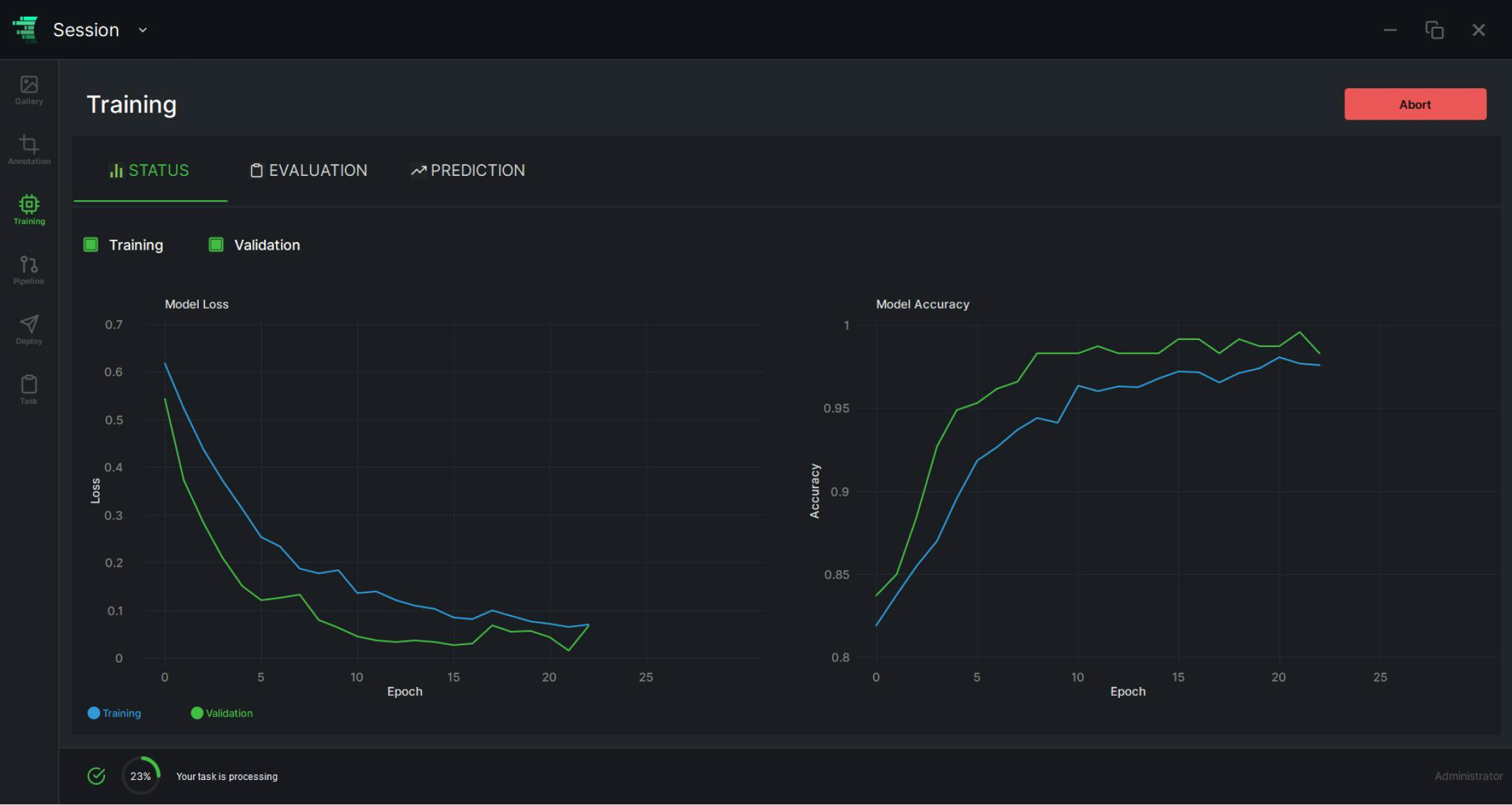 2. Follow the ReliVision Knowledge Hub User Guide (ReliTrainer: Training an AI Block) to train your AI model for wafer detection. The main steps, detailed in the User Guide, include;